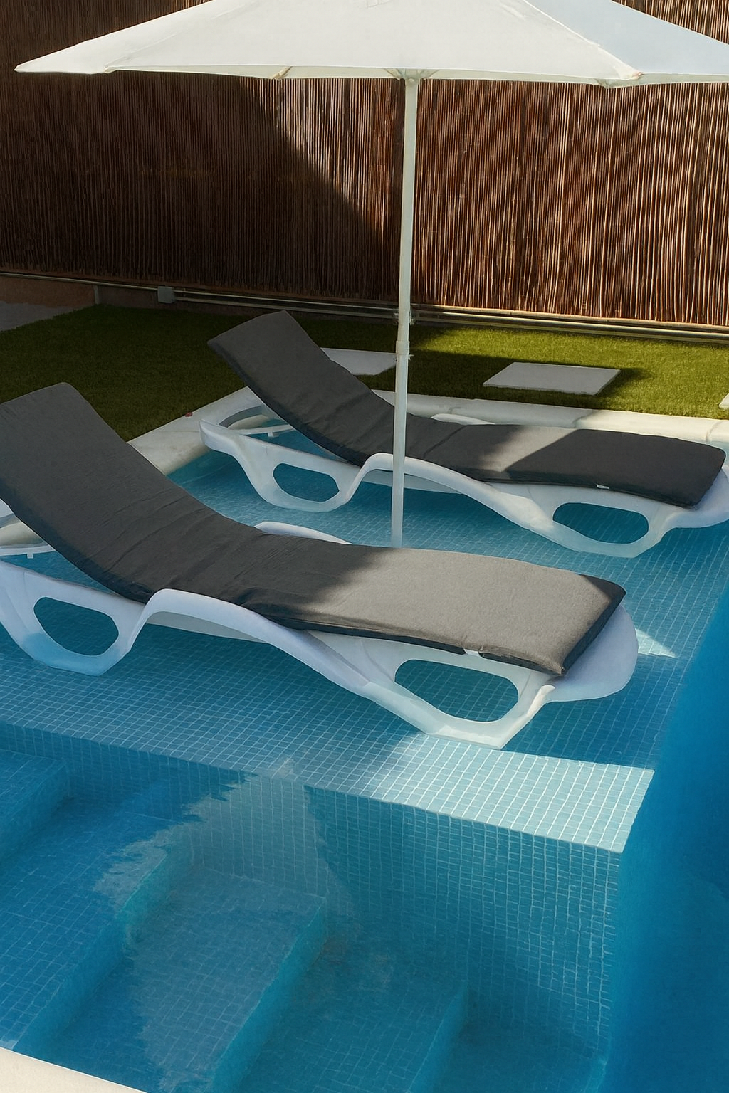 La piscina incorpora una silla de acceso asistido que permite a las personas con movilidad reducida entrar al agua con seguridad y autonomía.